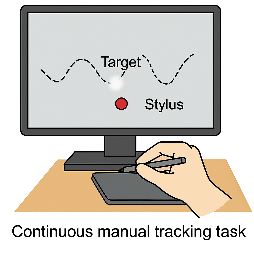 We analyzed stimulus–response lag and tracking error—quantified as the root-mean-square error (RMSE) of the response—to assess tracking performance in different conditions. To further investigate the contributions of internal models and real-time sensory input, we fit a Kalman filter model to the data. From the model, we extracted the Kalman gain (K), sensory noise (Rs), and motor noise (Rr) to quantify how participants integrated prediction and sensory feedback during tracking.